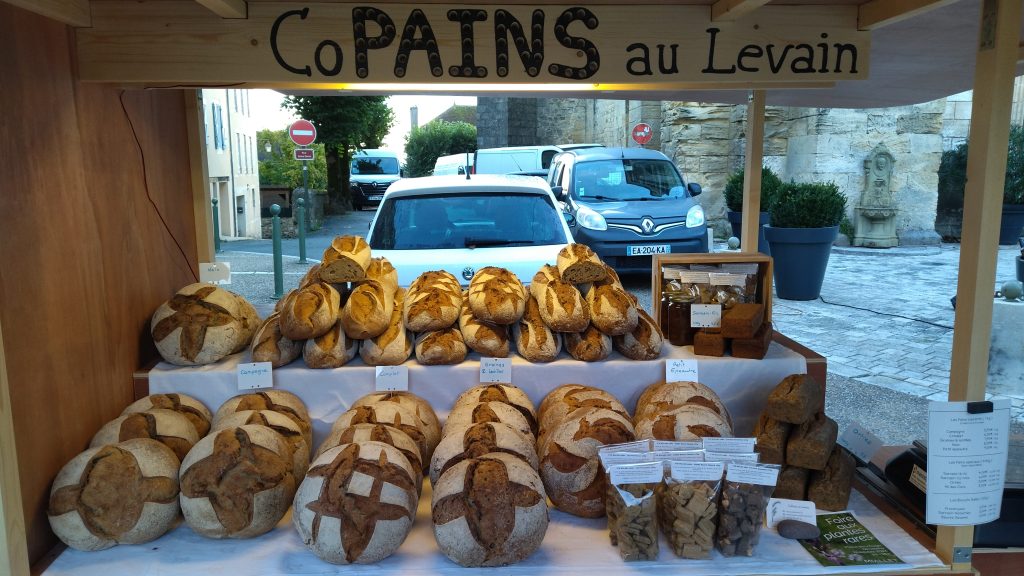 NB : tous les pains proposés ci-dessous sont panifiés exclusivement avec des farines brutes et du levain (pas d’adjonction de levure, d’additifs…).